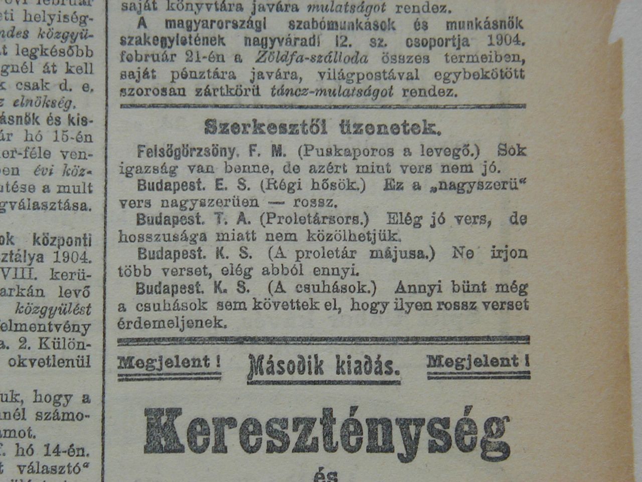 - Szerkesztői üzenetek